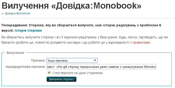 - скидаються пов’язані зі сторінкою посилання — так, що посилання стає червоним в інших статтях;