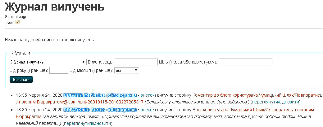Для завершення вилучення необхідно натиснути «Вилучити сторінку». Причина вилучення з’явиться в журналі вилучень.