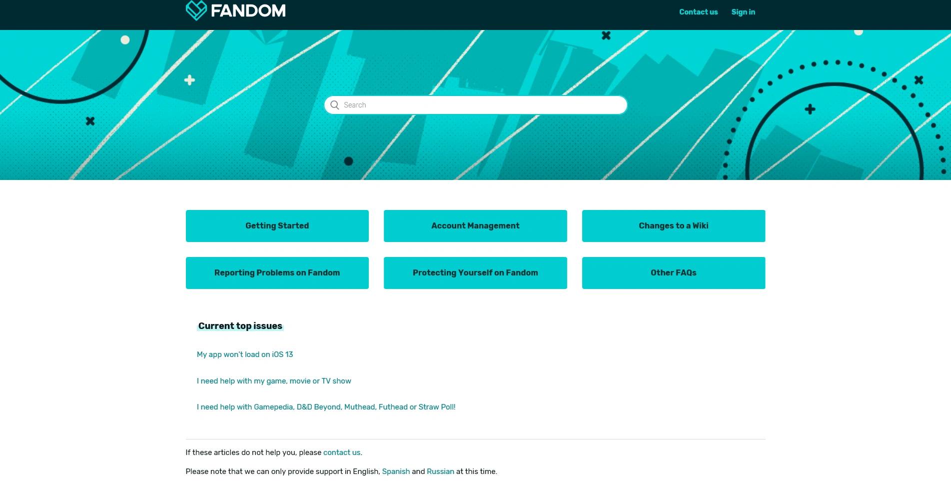 Підтримка — спеціальна форма на базі сервісу Zendesk, через яку можна зв’язатися зі співробітниками Фандому.