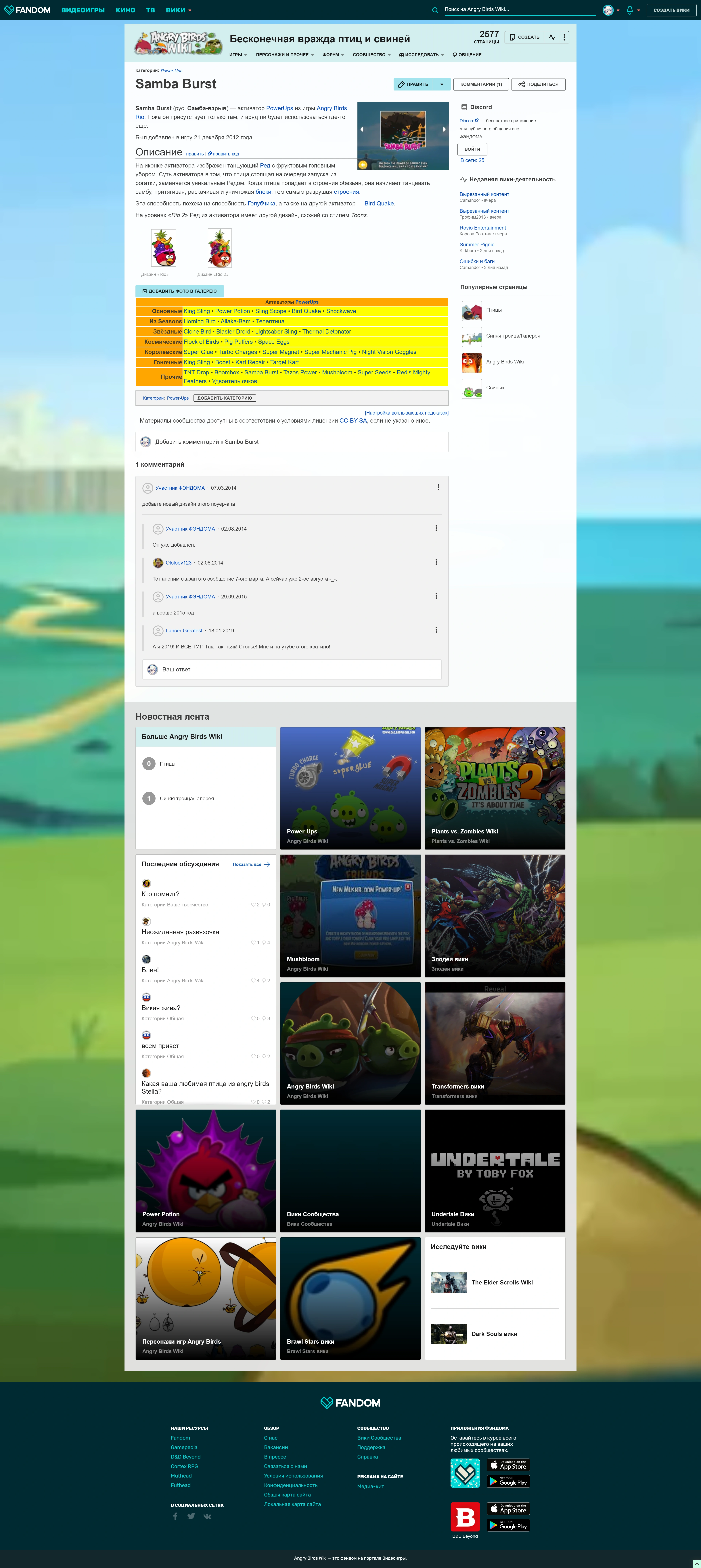 - і, якщо сторінка належить до основного простору назв, новинна стрічка (фенфіда), в якій представлені останні повідомлення в обговореннях, посилання на популярні статті поточної вікі та інших вікі хостингу, а також банери інших вікі.