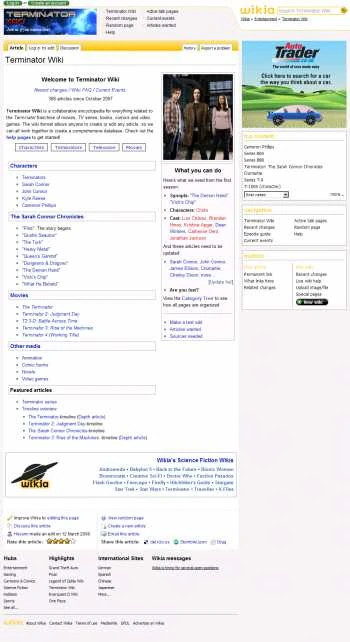 Вгорі перебували блок Фандом, пошук і меню вікі. Трохи нижче були клавіши «Редагувати», «Історія» і т. п.. Вся інша частина була заповнена основним простором, а також рекламою.